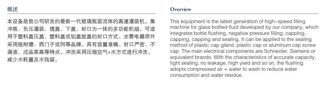 首頁(yè) - 產(chǎn)品展示 - 玻璃瓶沖瓶、灌裝、封口三合一機 - CGZ 玻璃瓶沖瓶、灌裝、封口三合一機